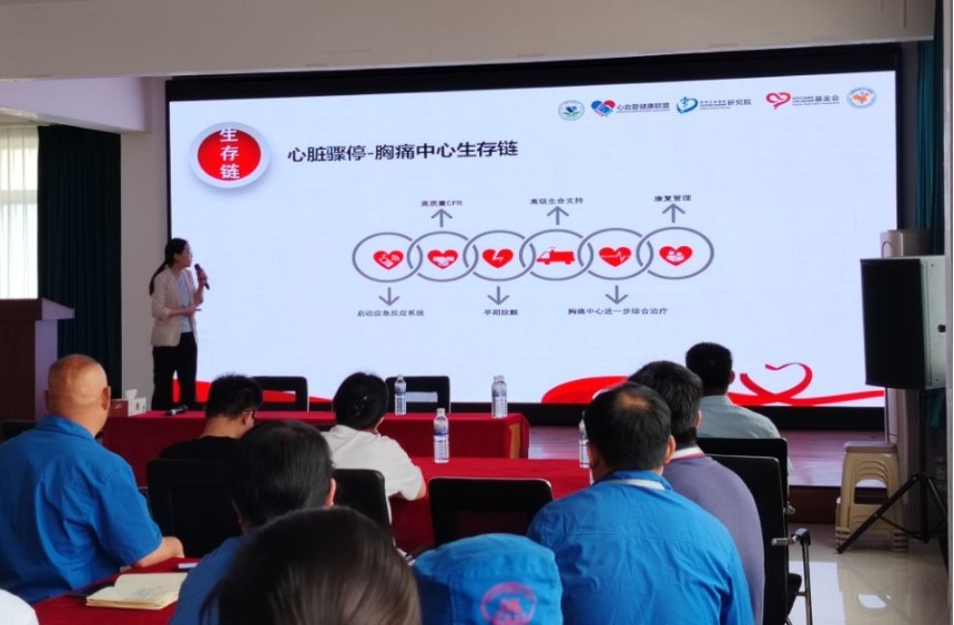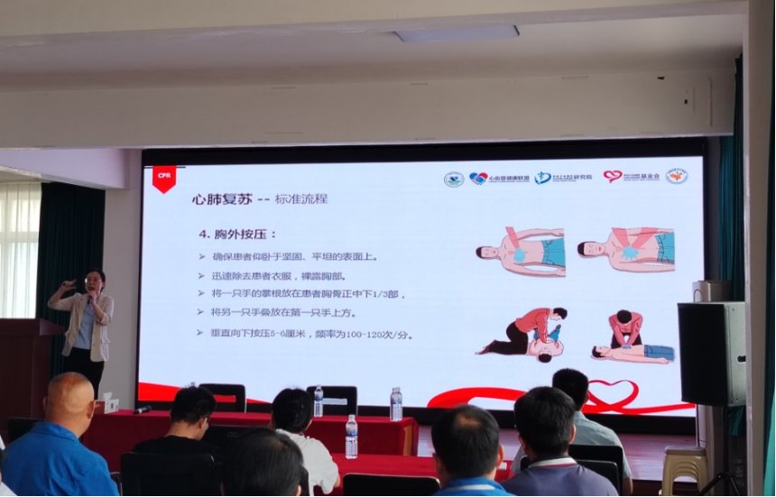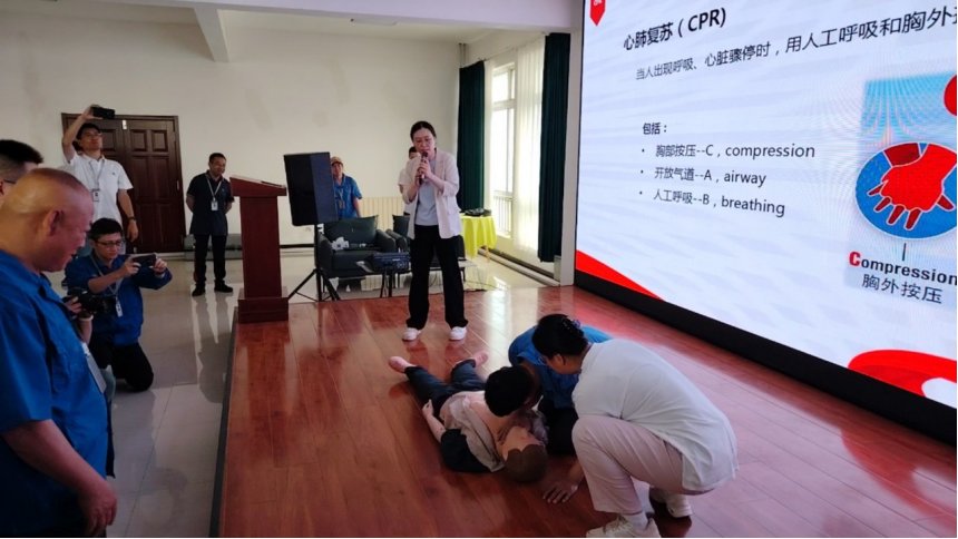 接下来由黄岛区中医医院的急诊科王医生给大家讲解了关于心肺突发病方面的判断和急救知识的讲解和实操示范。