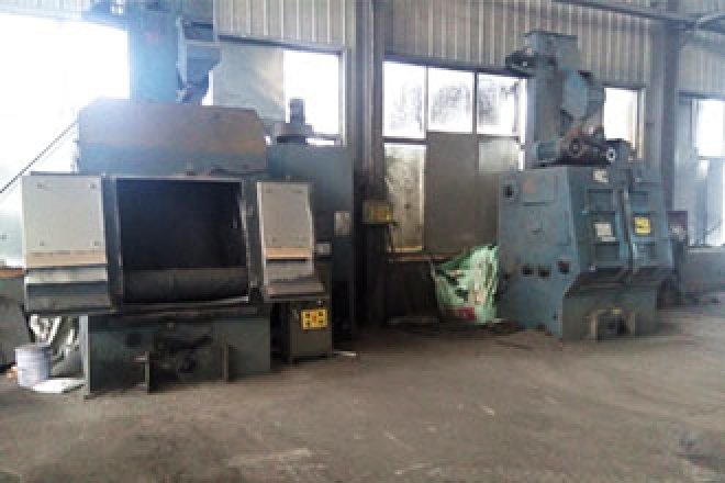Q3210履带式抛丸清理机7台,对不易悬挂的铸件的粗抛、精抛进行处理。